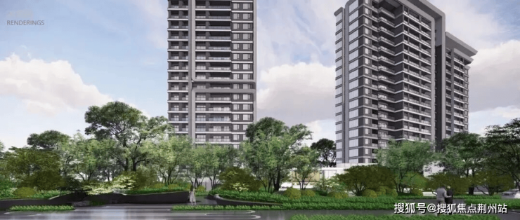 建筑效果图中,它有高级灰线条、剔透立面,挺拔清峻