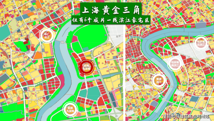 更为重要的是,纵观黄浦江中环内核心位置,仅存6个成片一线滨江豪宅区。其中5个(陆家嘴南北滨江、黄浦滨江、徐汇滨江、前滩九宫格)在过去30年已开发殆尽。