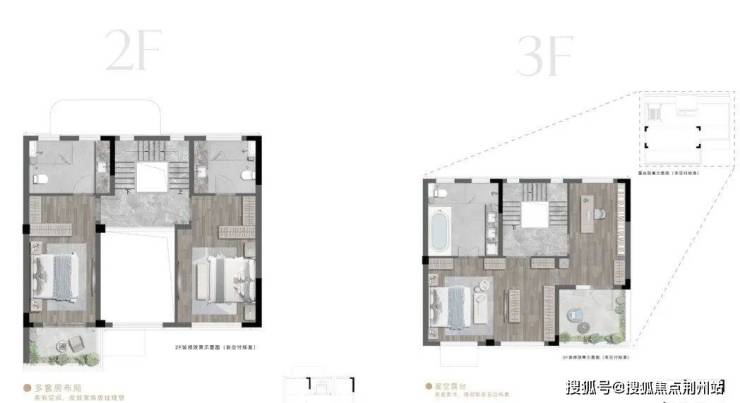 建面约215㎡联排,布局与上一户型相同,户型布局方正,后期方便业主改造,户型无面积浪费,实用性更强,功能布局更加合理,2F、3F均有露台赠送,真正做到有天有地有自然。