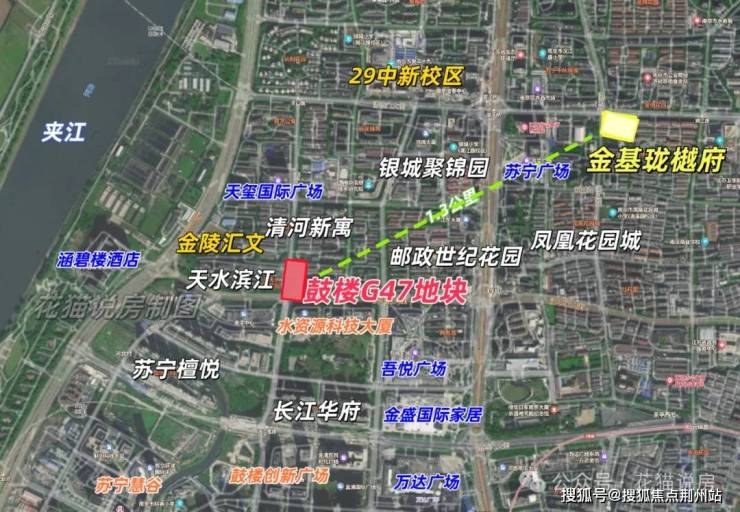 项目距离金陵汇文直线距离约300米,虽然期房不承诺学区,但这块地理应也在该学区范围内,地块旁的清河新寓、天水滨江都在金陵汇文学区范围内,是金陵汇文双学区(九年一贯制,初中部教学由金陵中学进行管理,小学部教学由拉萨路小学进行管理)。而此外,它周边的配套资源也非常好,有苏宁广场、吾悦广场等商业配套,距离万达广场也非常近。