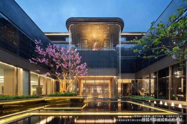 一条景观中轴犹如园区脊梁,串联各功能景观空间,将建筑统筹及全园景观布局纳于一体。庭院中心如“卧龙昂首”的浓阴绿洲与会所顶部“祥龙戏珠”的粉色碧玺,呈瑞意风水布局,借助通透无界的视觉通廊,让建筑与自然的和谐交融得以实现。