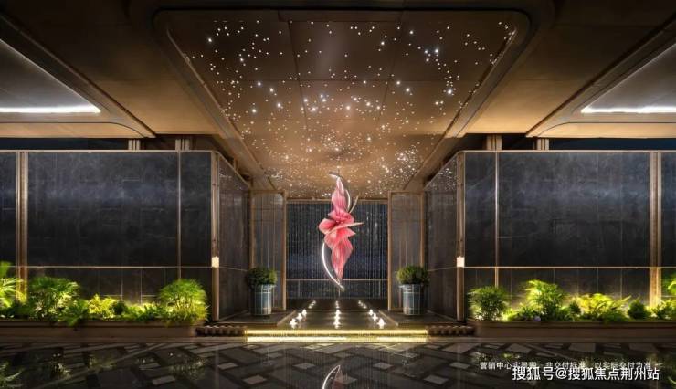 不至于尺度的震撼,宽庭得以匹配名门仪制的精髓,更在于其难以掩藏的匠心。南山工匠跨越全球采撷安哥拉黑、雪山白、普拉达绿等全球奢石,累计上百小时的研磨精锻,旨为不负跨越山河的厚重质感,敬呈嘉定熠熠生辉的主城壹号门牌。门庭中央,一尊仿玉石艺术装置巍然矗立,成为视觉的焦点与尊荣的引领,这不仅是一件艺术品,更是“缦奢归璞”的序曲。