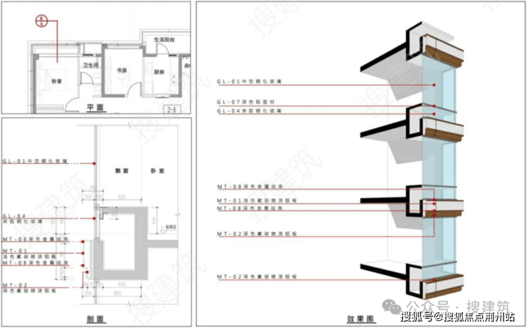 四川师大站TOD·锦江府·南苑 「墙体消失术」的运用下,北立面也匠心增加立面的玻璃面:比如,北向飘窗将玻璃立面延伸到飘窗中空部分: