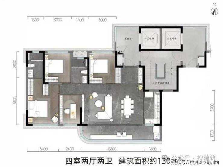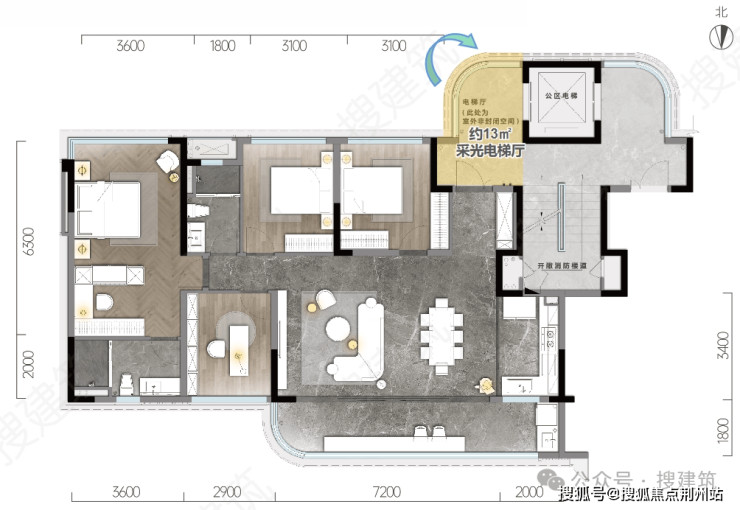 而大师级的工艺手法,让北立面横向建筑线条的设计比例,遵循黄金分割,在平衡与稳定、强调与对比、纹理与质感等多维方面中,实现超强的美学视觉,颜值出众,引人入胜。
