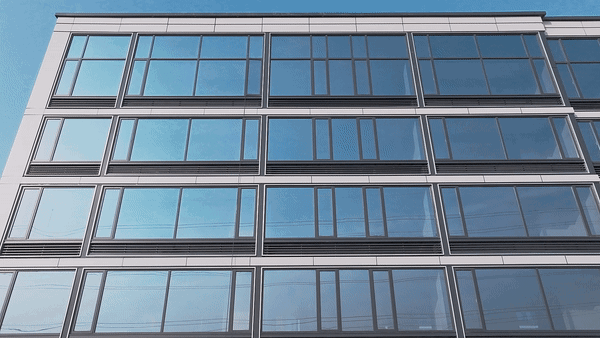 杭州天阳·湖与舍项目不仅北侧也做到了大面铝板覆盖,连北连廊消防楼梯间做到了全落地窗玻璃,设计兼顾美感,仿造太空舱体,辅以大量竖向线条的运用带来上升的动势。