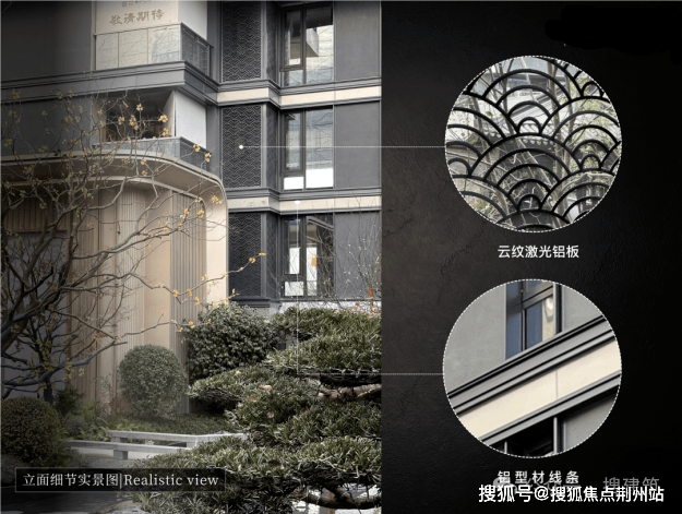 成都中建壹品金沙公馆,为了打造高颜值的南北双立面,让背立面更美观,在空调机位的设备平台创新性的用了定制的祥云纹激光铝板遮蔽。并且在激光铝板上增加了圆孔纱窗,便于后期清洁和防蚊虫,展现出人性化细节关怀。