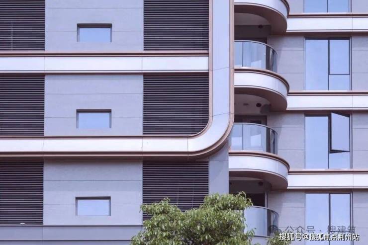 南京中海·江湾境北立面的设计上采用了木纹铝板增加立面层次感,用暖色系突出“家”的感觉。