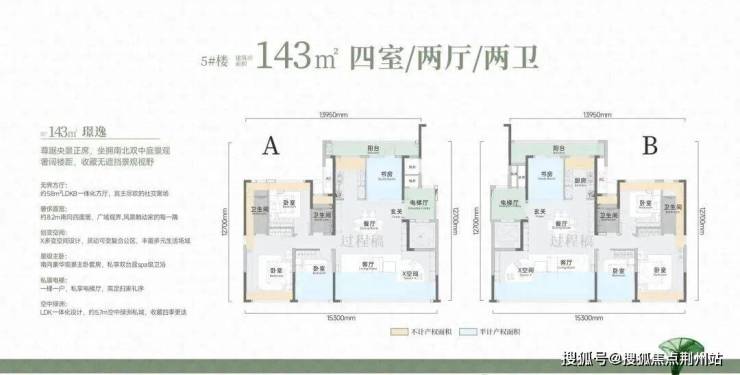 最大户型是建面约143平四房: