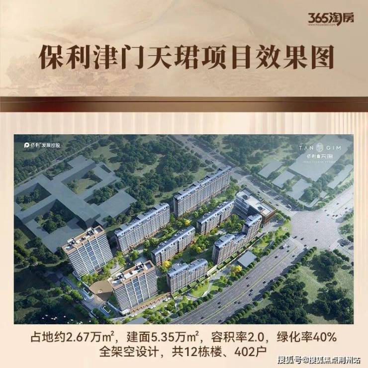保利津门天珺项目占地约2.67万㎡,建面5.35万㎡,容积率2.0,绿化率40%,全架空设计,共12栋楼、402户。