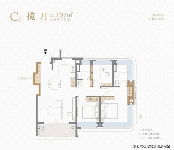 建面约107㎡ 3房2厅2卫▼