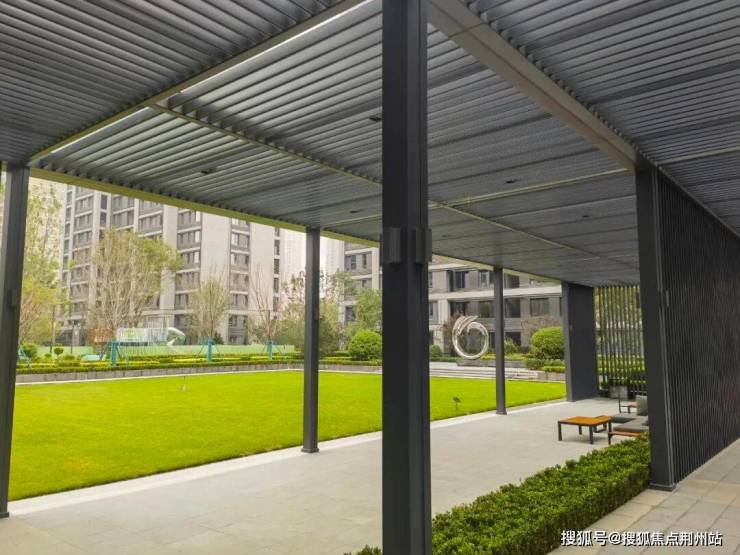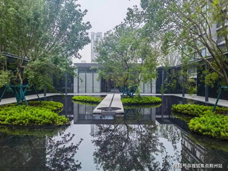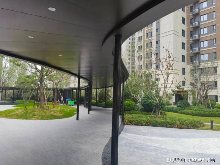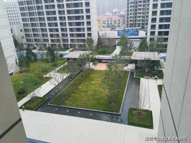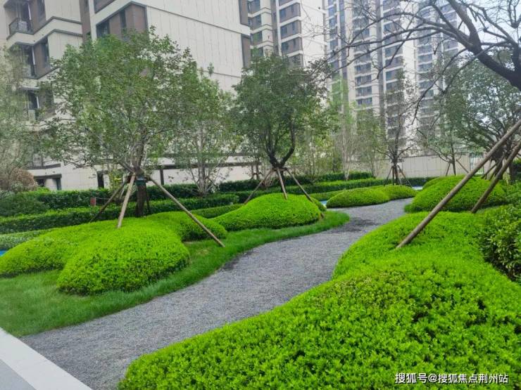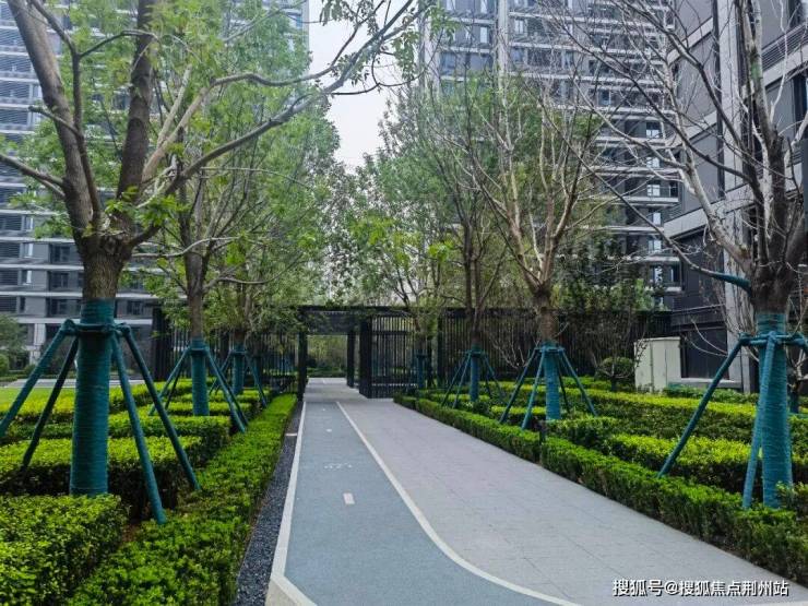 景观设计上,宣传用语是“内外双园、六境园林”,实际就是东西做了两处水系水景,中间大草坪,西侧有金属廊架,加上必有的一些功能区(会客休憩、儿童娱乐、塑胶跑道、消防空地等)。小区刚交房没几个月,园林绿化不是特别好,尤其是小区东侧和北侧,有点秃。但高端楼盘该有的都有,成树移植、多重立体、花卉灌木乔木搭配得当。