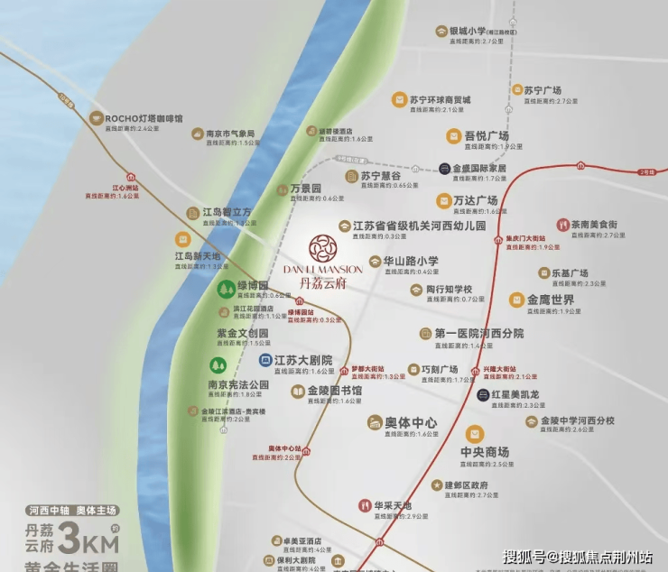 3 公里内覆盖江苏大剧院、奥体中心、金鹰世界等高端配套,满足文化、运动、商业等全场景需求;