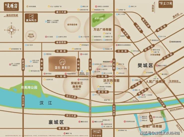 项目立于滨江商务带(规划中)、爱琴海购物公园(建设中)、武商集团襄阳总部(规划中)老樊城黄金三角正芯,处于樊城成熟核心位置,区位优势明显。1公里半径辐射范围内,沃尔玛商圈、万达广场商圈、滨江商务带商圈步行可达。咫尺周边2公里范围内方圆小学、人民路小学、松鹤路小学、长虹路小学、襄阳八中、阳光学校(初中校区)、襄阳三十九中等名校聚集,尽享城央繁华配套。内享五大花园盛境,外揽月亮湾、银河运动公园、紫贞公园自然美景。