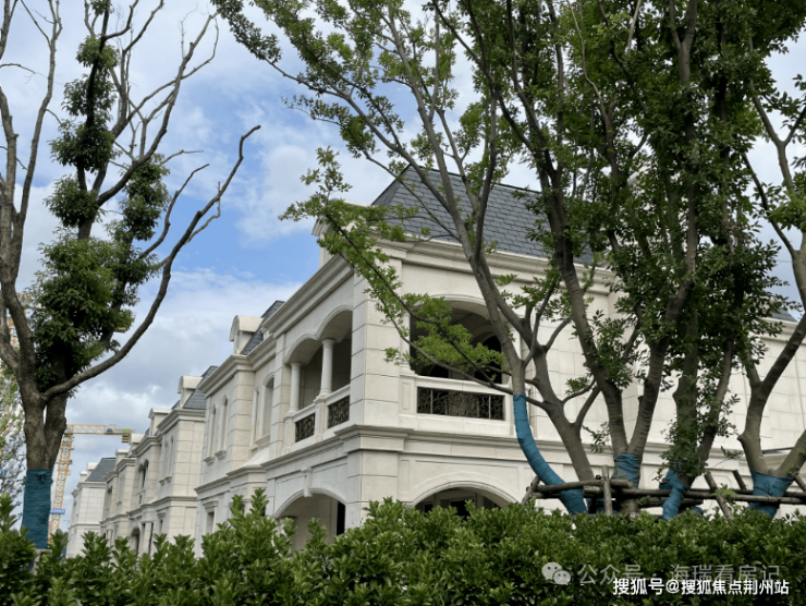目前一期别墅已经完成交付,整体楼栋的外立面成蛟觉得是非常漂亮,典型的法式风格大宅别墅,外立面石材质感满满,小区内绿化处理也基本接近全部完成。