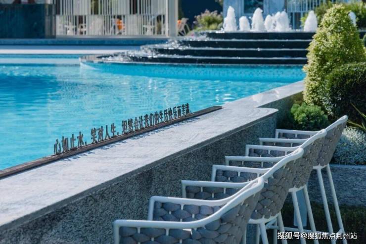 大量的玻璃幕墙+局部铝板等建筑元素的恰当组合,低密的纯洋房大盘在园区中央打造了颠覆性的“六翠之境”:目之所及是一片通透的蒂芙尼蓝,镜面泳池里波光粼粼,倒映着蓝天白云,是真正的“天空之镜”,与边上高大的棕榈树、白色的躺椅、繁茂的绿茵,彼此映衬,海边度假风油然而生。