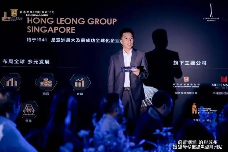晚宴环节,由城市发展集团(City Developments Limited, 简称CDL)旗下M SOCIAL酒店倾力呈献。晚宴开始前,由CDL China苏州公司副总经理赵总登台,向来宾娓娓道来CDL的品牌故事,并进一步诠释了丰隆海纹中心作为城市艺术地标的精神内涵与未来生活构想。