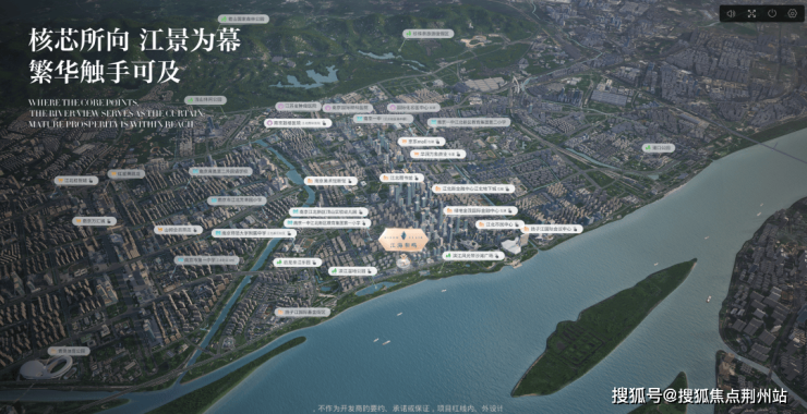 江海和鸣直线距离长江约 300 米,真正的一线滨江生活,尽揽江河盛景。周边生态公园环伺,实现公园与社区的无界互连。同时,项目临近高端商业,立体式交通高效链接南北双主城,优享未来美好生活的图景。