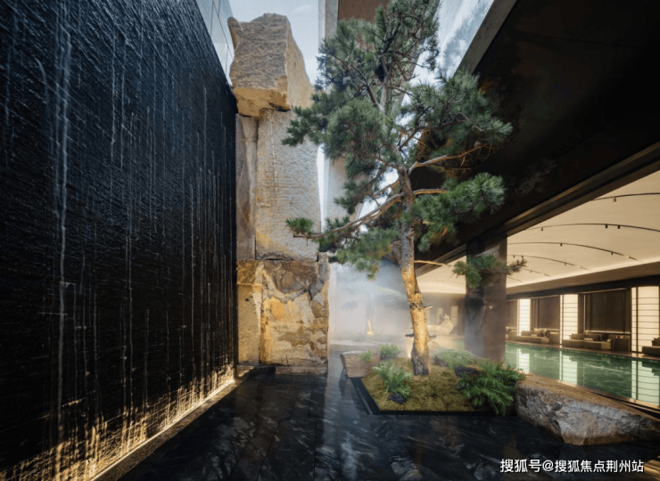 最具代表性的,是用了约400吨的天然石材,只为打造“一面墙”——天然的山石、水瀑、奇松,还原出真实山林的气韵与视感,家楼下是名山大川的“浓缩”,还是人工斧凿的传统景观,对未来业主的情绪感知与烘托,会大不一样。