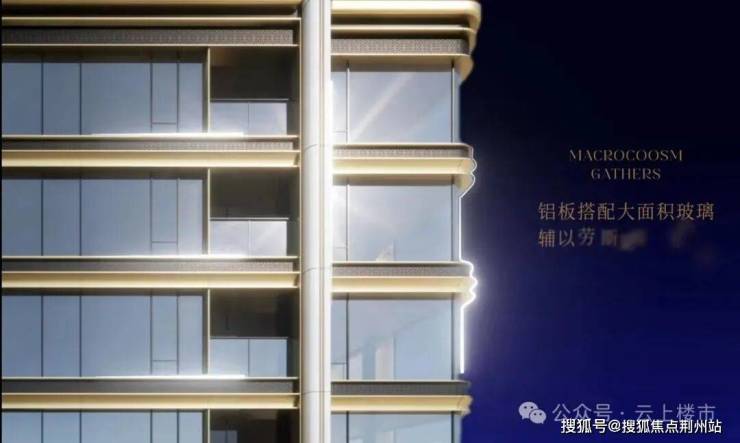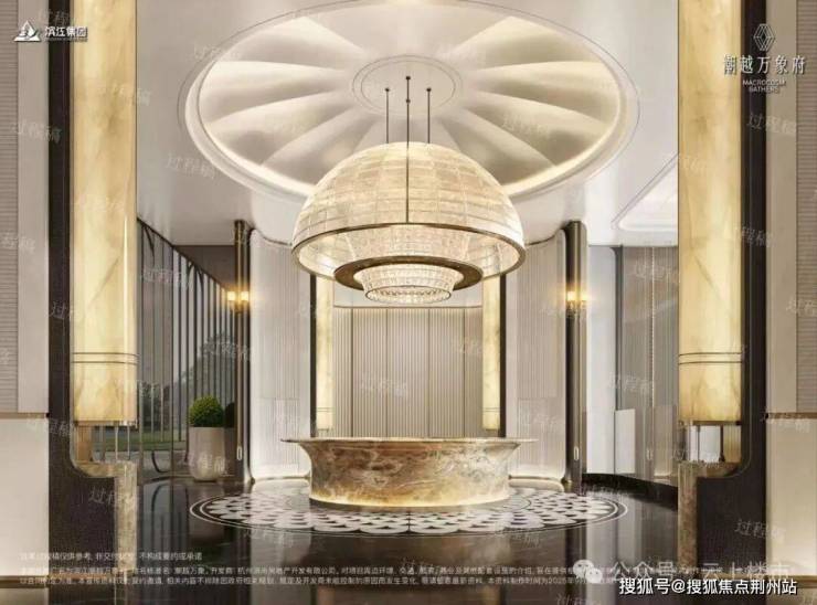 建筑外观贝母白铝板搭配劳斯莱斯同款香槟金腰线,加上瀑布般的“水晶灰”大面玻璃,尽显高端质感。由豪宅御用设计师蒋愈大师亲自执笔,灵感来源于迪拜地标“金相框”,并与区府地标开元酒店的金顶遥相呼应。