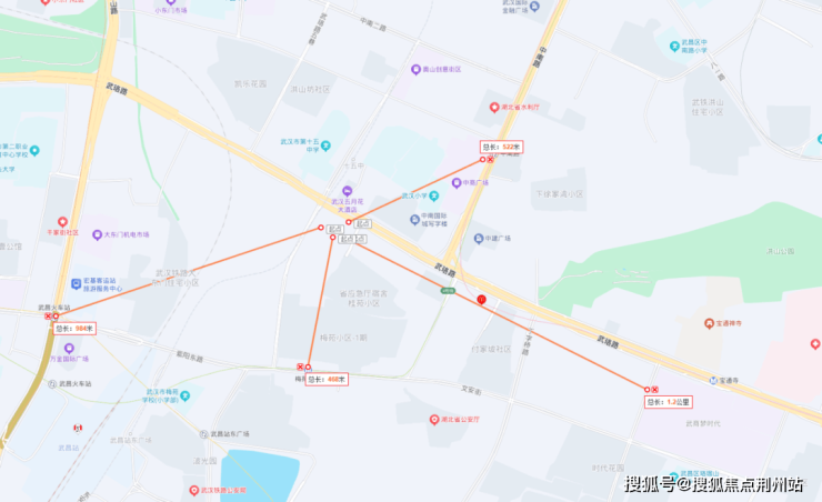 医疗配套方面,项目南边直线距离不到900米有武汉科技大学附属天佑医院,直线距离约1.5公里是中部战区总医院,约2.4公里是湖北省妇幼。