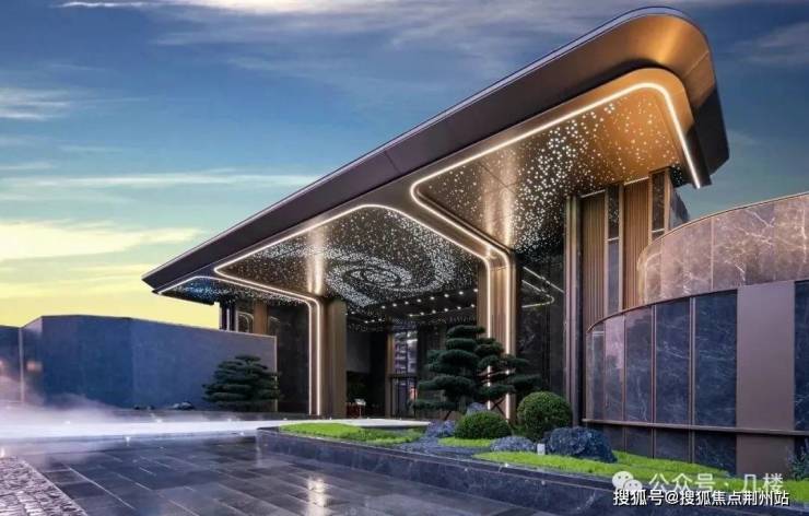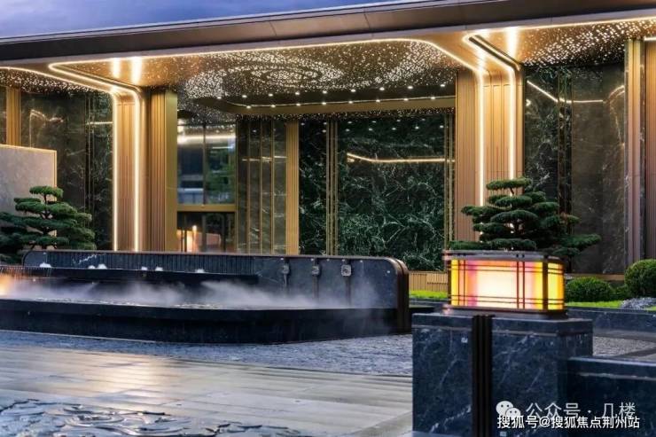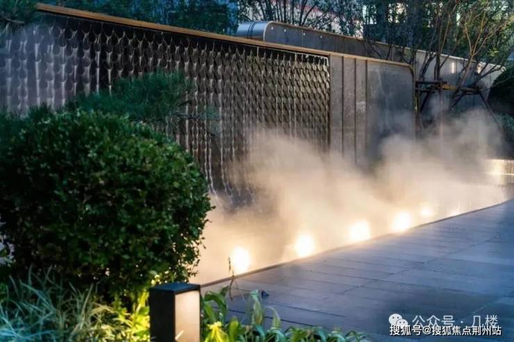 看这安哥拉黑奢石为基的龙鳞景墙,灯光与雾森系统映衬之下,极致园林美景尽显,整个社区内打造多处奢石造景。