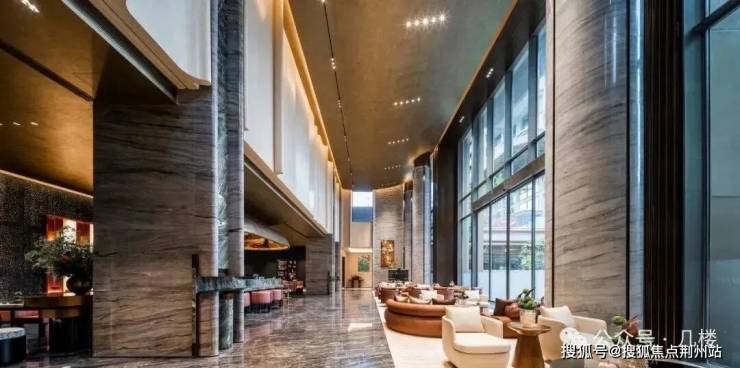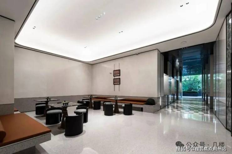 先看这首层会所大堂,拼花地面,接待台全奢石打造,金属吊顶……