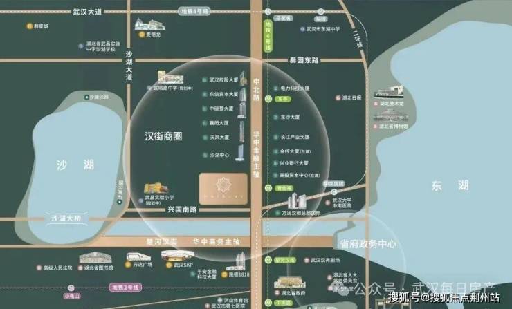 本案向南600米即是武汉唯一重奢店王武汉SKP,1.5KM楚河汉街人潮与中北路资本在此共舞,窗景即顶奢文明棱镜。