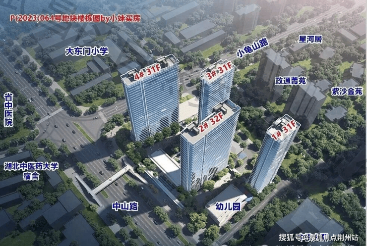 项目报规,已确定引入招商代建。项目规划了4栋31-32层的高层住宅,以及一所幼儿园。其中住宅约5.2万方。公服配套方面,规划有生鲜超市、泳池、公厕等。该项目容积率约2.82,并不算太高,总户数约359户,地下停车位592个。计算可知,户均建面约145平,车位配比约1:1.6。预计还是以改善户型为主,车位配比相对充足。项目共包含4栋住宅:1号楼总高31层,首层为养老用房;2号楼总高32层,首层架空;3号楼总高31层,首层架空;4号楼总高31层。