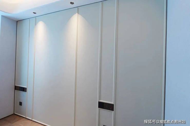 入户门前,金属面板搭配编织纹,从上方打下来的暖色调灯光,映照在项目logo和室号之上,让业主从电梯里出来走到家门的时候就已经给满了仪式感。