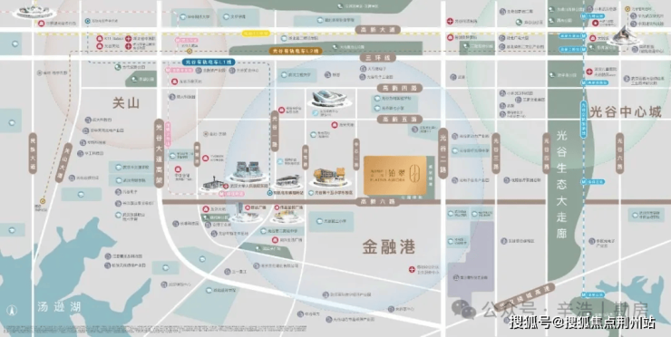 产业的聚集,人口的涌入,在光谷蓬勃发展的30多年中,已构成一个衔接紧密、环环相扣的“金三角”——前商-中港-后城,作为“金三角”关键过渡点与支撑点,金融港已成为具备城市生活资源精粹和高尚人文内涵的居住区域。