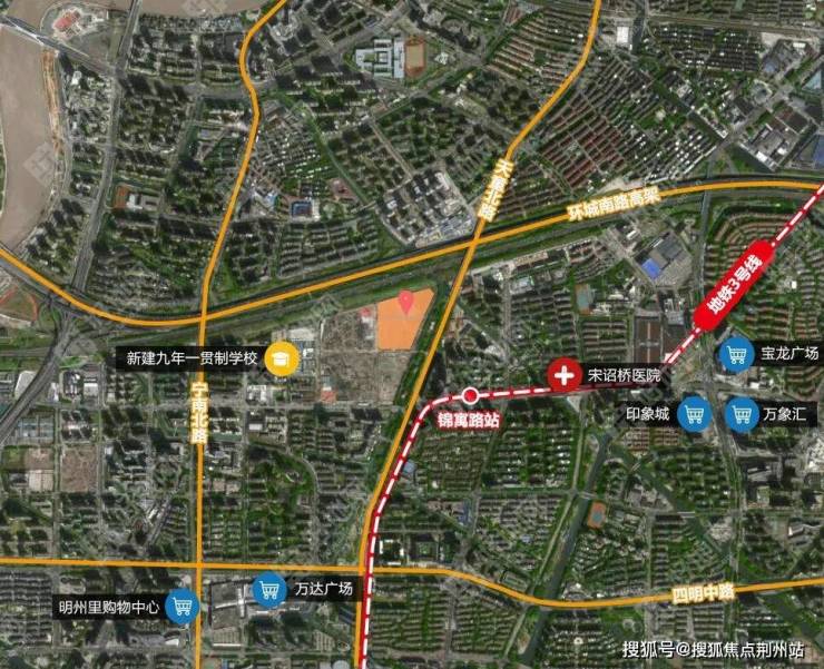 地块向南直线距离不足500米即达地铁3号线锦寓路站,环城南路高架、天童北路、宁南北路等城市主干道交织成网,构建起全域畅达的立体交通格局。