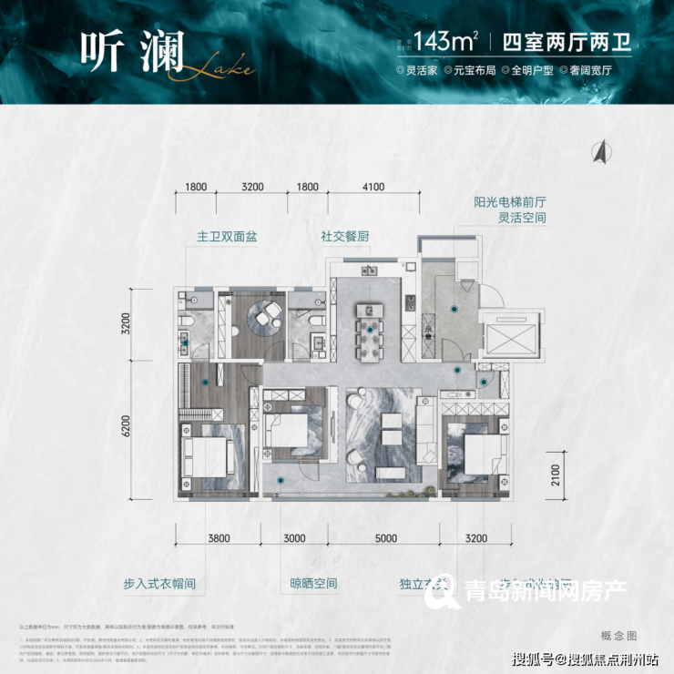 青特滨湖国际2期目前主要在售11、16、17号楼,建面约143㎡、159㎡、195㎡,均价16000元/㎡-22000元/㎡。项目容积率仅约1.32,打造约12000㎡中庭景观,楼间距最大约153米,叠加阳光花房、儿童活动区等功能。主打140㎡+大户型,不论采光、空间均优于市场同类产品。据介绍,项目143㎡户型得房率达到了100%,195㎡户型得房率约105%,凭借高得房率,开盘后多次加推都火速被抢,成为城阳区“现象级红盘”。