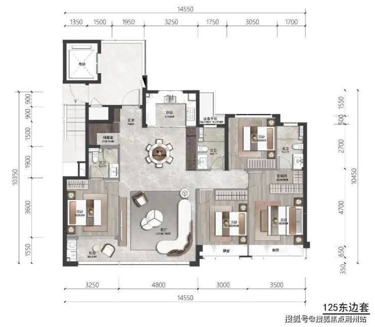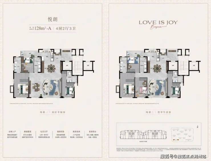 在这一户型中,约128㎡的建筑面积内,巧妙规划出4房2厅3卫的完整生活场景,即便三代同堂或二胎家庭居住,每位成员仍能享有舒适独立的起居空间。搜建筑