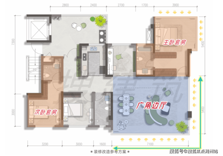约10㎡阳光入户前厅,开放式布局兼顾过渡与隐私,可根据需求灵活规划为独立玄关、系统储物或家庭艺廊,赋予空间更多功能想象。搜建筑