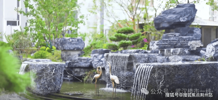 进入小区就能看到层级水景自天然山石间潺潺跌落,线状叠水如珠帘闪烁,层级跌水层层下落、韵律感十足,瀑布式叠水则气势磅礴。