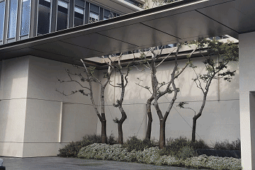 不锈钢结构施工面积1500㎡,涵盖风雨连廊与屋檐等关键部位。金属构件排布规整,表面色泽协调一致,整体呈现简约现代的工业美学质感,兼具功能性与视觉统一性。