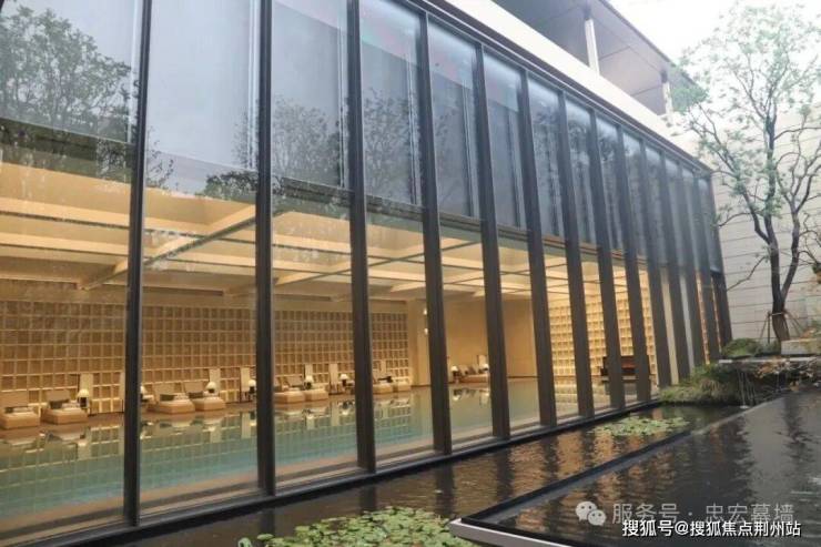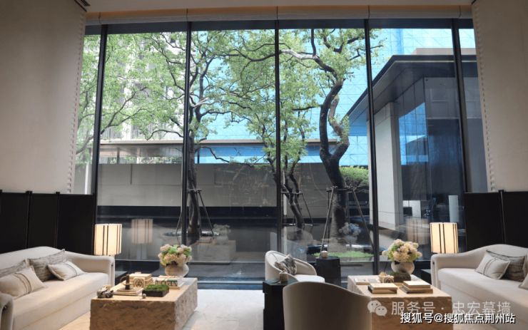 润玺示范区的接待休憩区以全景落地玻璃幕墙为主,不仅引入充沛自然光,更将室外景观无缝融入室内视野。宾客在交谈间隙抬眼即见庭院绿意与水系灵韵,通透敞亮的空间模糊室内外界限,延伸出开阔的视觉纵深感;光影随日光流转的韵律,进一步烘托出舒缓身心的雅致氛围。