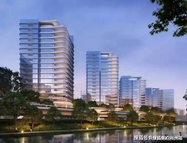 建筑设计:外立面以“站立的江潮”为灵感,采用弧线转角阳台+蓝灰色LOW-E玻璃,公建化立面超高窗墙比,玻璃反射比控制在0.16以下,兼顾景观视野与私密性。建筑布局南偏东15°错位排布,优化日照与河景视觉联动。