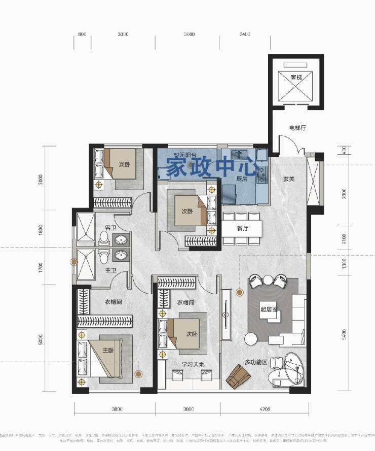 可作为长辈房、或工作晚归的休息间,一家人作息时间互不相扰。