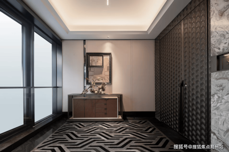 在传世美学工艺上,追求极致的细节把控。吊顶采用三层叠级式设计,层次分明,提升空间立体感;边角处做圆角化细腻处理,打破传统直角的生硬感,让空间线条更显流畅自然,既美观又能避免碰撞风险;甚至空调风口都融入镂花设计,简约中透着典雅大气,将美学与实用完美结合。