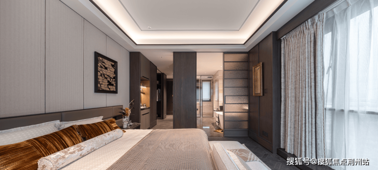 最令人惊艳的是约 43㎡洄游式豪华主卧,面积堪比普通住宅的 3 个房间,且采用 “衣帽区、卫生间、卧室”三分区独立设计。步入式衣帽区能容纳男女主人的衣物、配饰,满足高端收纳需求;独立卫生间配备高端卫浴设施,兼具私密性与奢华感;卧室空间宽敞舒适,搭配大尺寸飘窗,无论是休憩还是观景,都能享受极致的居住体验,私密性与尊贵感双双拉满。