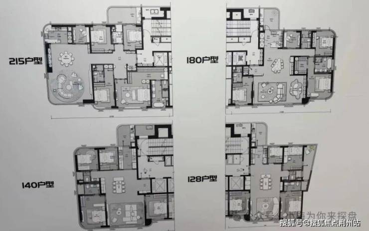 有128、140、180、215四个户型,户型图如下 ,具体还是以官方为准。
