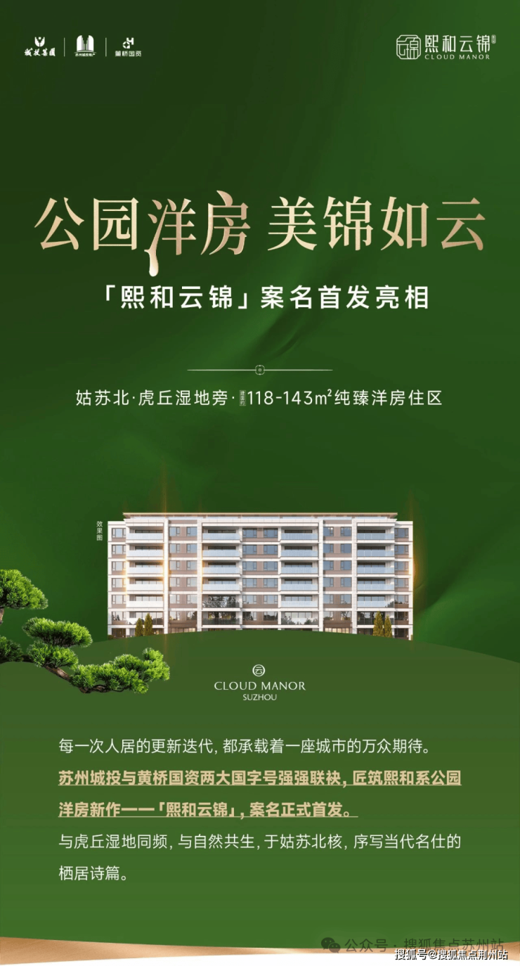 双强合璧,联手打造的熙和云锦雅园,乃紧邻万亩虎丘湿地公园旁的公园臻洋房社区(主打6/7F洋房产品)!真正低密、小而美的精品住区!
