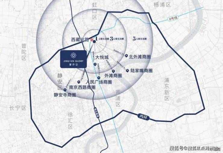 项目步行约200米即达8号线地铁站,5轨交汇,3站直达人广,5站陆家嘴。约1公里内静安大悦城、苏河湾万象天地等顶流商业环伺,苏州河滨水步道、中兴公园、三甲医院与优质教育资源触手可及。