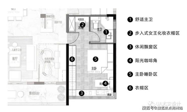 比如尤安设计的融创华南 I AM I • 90后新生代129产品,非常优秀。老人卧套与主卧套分别位于公区客厅两侧,避免两代人生活干扰,并且拥有独立的生活空间:老人卧套自带0.5卫、收纳空间、兴趣空间、以及直通景观阳台。
