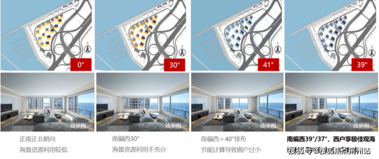 项目规划为改善型海景豪宅,面积区间在145至390平方米。全部采用电梯独立入户的设计,确保了居住的私密性和尊贵感。为保证最大景观角度,对建筑排布及户型朝向进行了多次论证,最终采用西偏南39°的建筑布局,满足西户独享极佳海景视野,东户保证全天充足阳光。