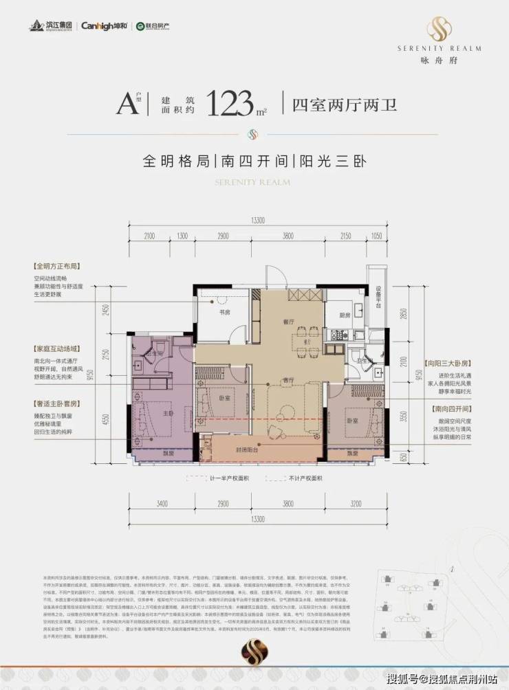 约13.3米的南向采光面,四开间朝南、三卧朝南,让生活沐浴在阳光里,在同面积段产品中实属难得;LDKB布局,卧室自带飘窗,主卧臻配独立卫浴,可以说是初改置业的福音;北向还拥享一方书房空间,可改造成茶室、电竞房等,轻松实现“悦己人生”。