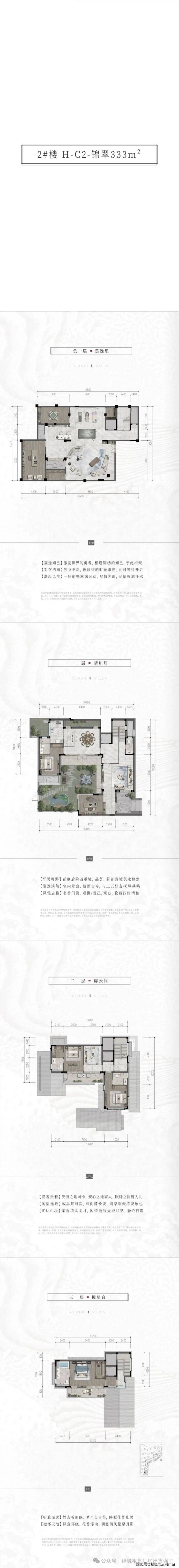 【户型面积】:建面约290-556㎡滨水院墅,建面约143-245㎡雲幕平墅