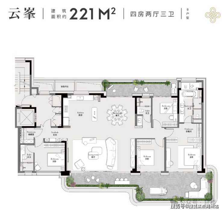 以建面约221㎡户型为例,来感受一下项目户型的魅力——