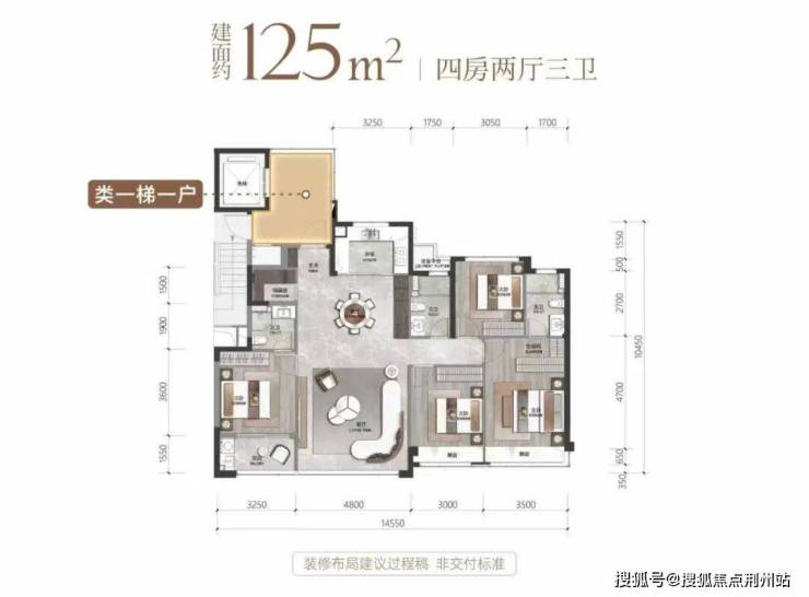独立电梯入户,光候梯室前室就有将近10㎡的可利用空间。户内同样拥有赠送面积,全屋赠送超25㎡,实得率100%。南向近15米大面宽四朝南,更是可以媲美市面上建面约150+的大平层尺度,花小钱享顶端配置,小编个人觉得还是很香的。